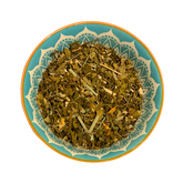 Gunpowder green tea, tulsi (also known as 'holy basil'), ashwagandha, lemongrass, gotu kola, ginkgo biloba
